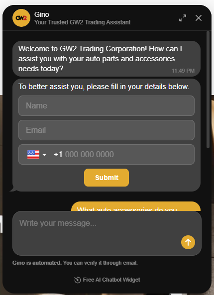 Gino is a free ai agent who is responsible for solving most common inquiries while filtering out between end-user and reseller with the purpose of B2B driven sales.