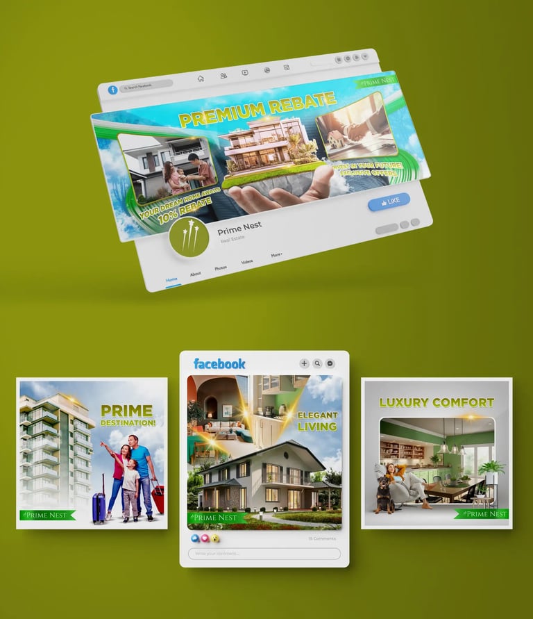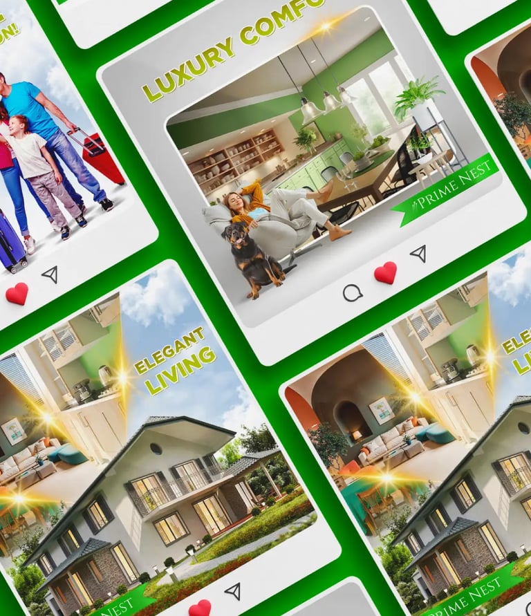 Prime Nest's outdated designs and poor branding were severely undermining its market credibility and digital presence. This lack of visual sophistication created a major barrier on social media, failing to communicate the necessary trust and expertise required for high-value real estate transactions.